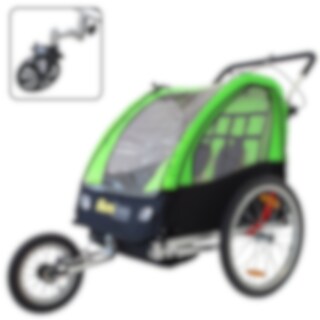 På ett ögonblick kan du förvandla cykelvagnen till en barnvagn med smidigt, roterbart och löstagbart framhjul. Strollerhjulet är lite större och fixerat i ett läge - perfekt för promenader på grusvägar och stigar.
