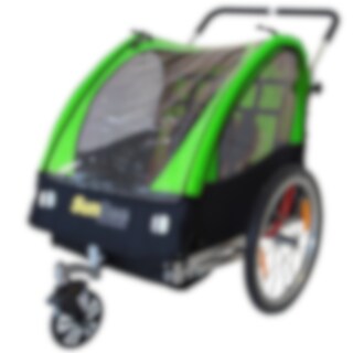Sunbee Cruiser är en cykelvagn för ett eller två barn, där det äldsta kan vara upp till ca: 5 år. I denna version ingår ett s.k. strollerkit bestående av ett löstagbart framhjul, handbroms samt barnvagnshandtag. Vagnen kan alltså användas både som cykelvagn och som stroller på promenader. Det är mycket enkelt att montera av/på strollerkitet, inga verktyg fordras. Denna kombination är perfekt för dig som t.ex. vill cykla in till stan och därefter gå runt bland affärer medan cykeln står parkerad.
