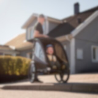 Här har du en allsidig cykelvagn för livets olika pussel! EvoBike Yxlan förvandlar du enkelt från barnvagn till strollervagn eller cykelvagn. Hytten fäller du snabbt ihop så att vagnen får plats i bilens bagageutrymme. För bästa komfort är det vadderat säte och 5-punkt säkerhetsbälte till barnet och regntak samt tonade sidorutor.