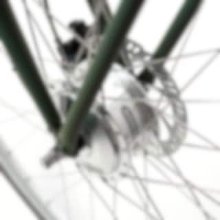 EvoBike CLASSIC-3 har utrustats med en navmotor i framhjulet från välkända kvalitetsmärket Bafang. Motorn har 250W effekt och startar automatiskt när du trampar.