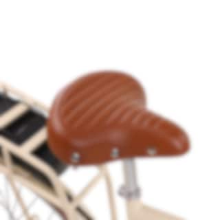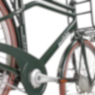 Designen på Classic-7 är genomtänkt in i minsta detalj. Ramens färg matchar ton-i-ton med skärmar, kedjeskydd och pakethållare, vilket skapar ett enhetligt och stilrent helhetsintryck. Läderdetaljer på handtagen och en brun sadel som matchar de bruna däcken förstärker den retroinspirerade känslan.