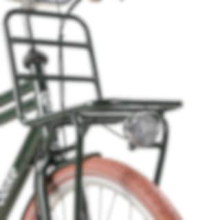 Cykeln är utrustad med pakethållare både fram (max 10 kg) och bak (max 25 kg), vilket gör den praktisk för såväl pendling som vardagliga ärenden.