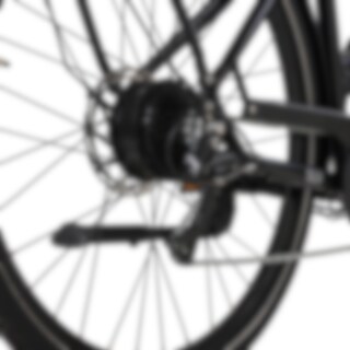 Motorn sitter i bakhjulet och kommer från kvalitetsmärket Ananda. Den ger 250 W effekt och ett vridmoment på 45 Nm, vilket ger kraftfull och följsam assistans i alla lägen.