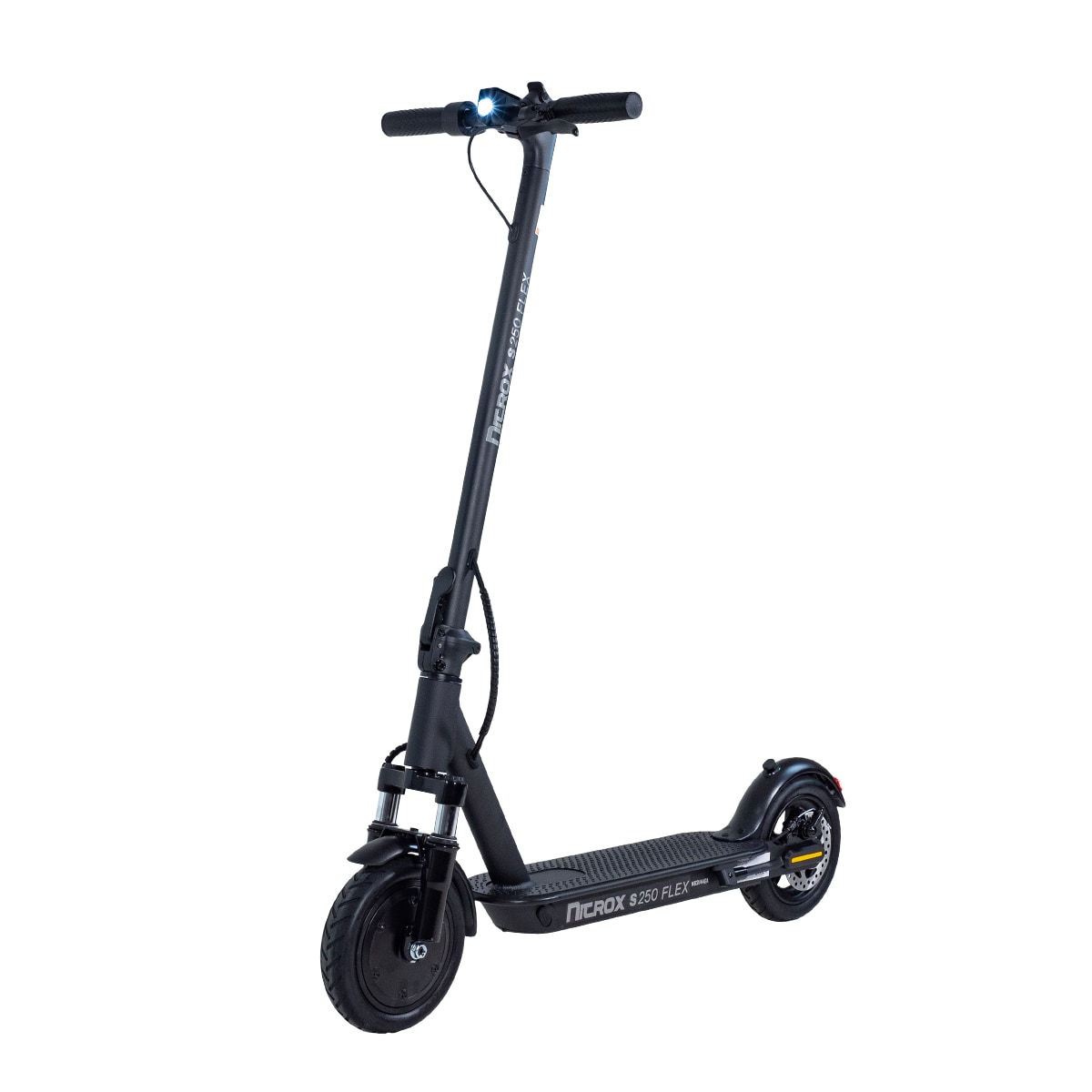 Nitrox S250 Flex är utrustad med LED-belysning och reflexer för ökad synlighet. Den robusta aluminiumramen och kapaciteten att bära upp till 120 kg maxvikt garanterar en stabil och säker tur.